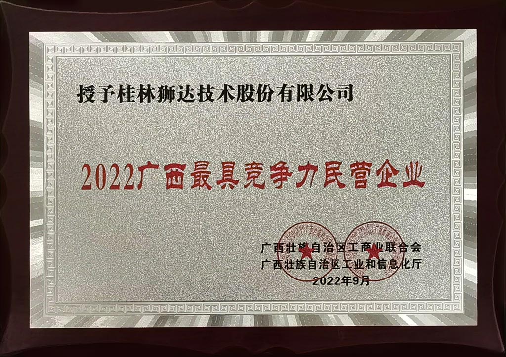 2022廣西最具競爭力民營企業(yè)證書