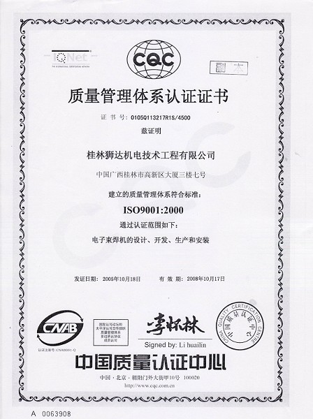 質(zhì)量管理體系認證證書