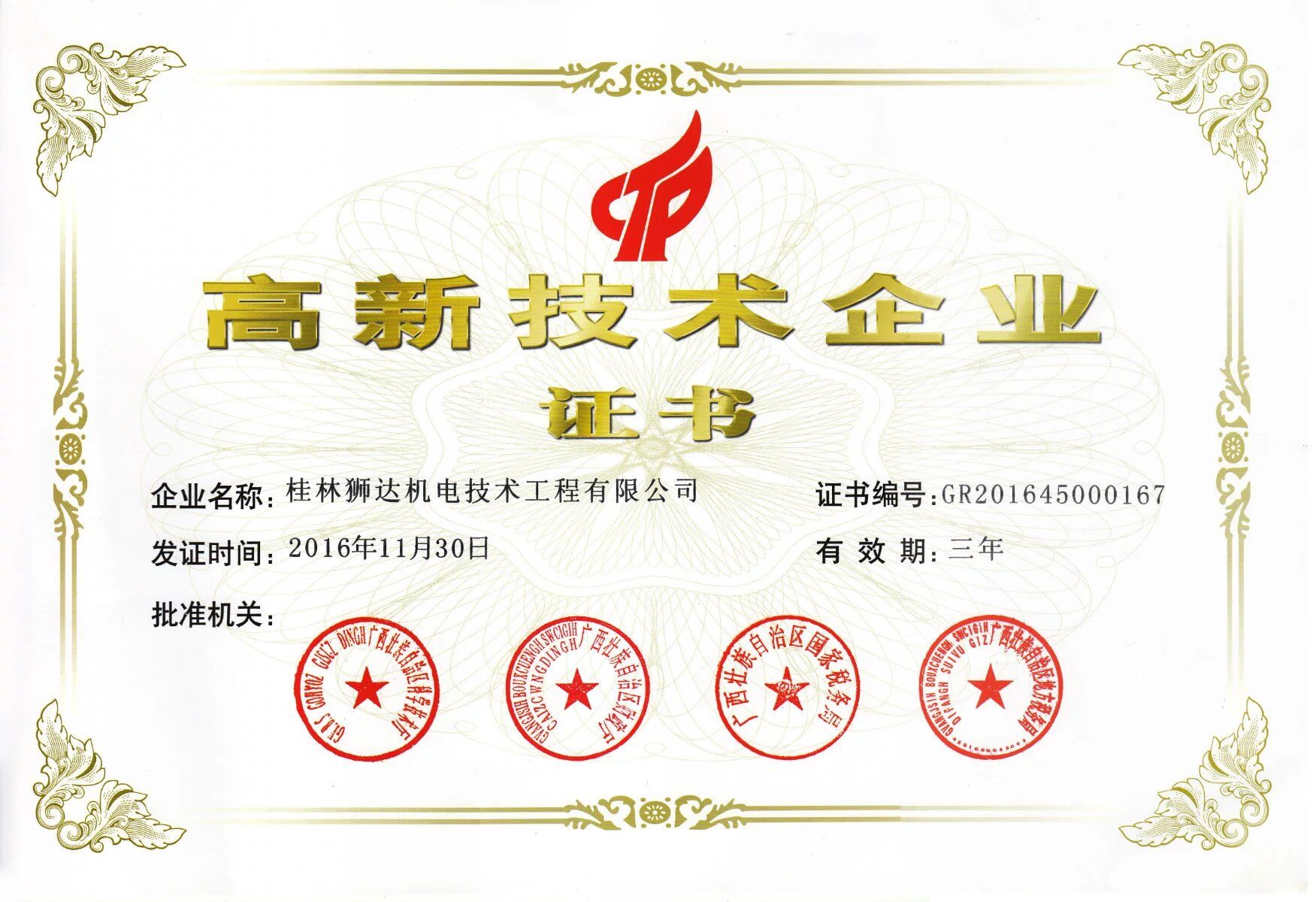 高新技術(shù)企業(yè)證書