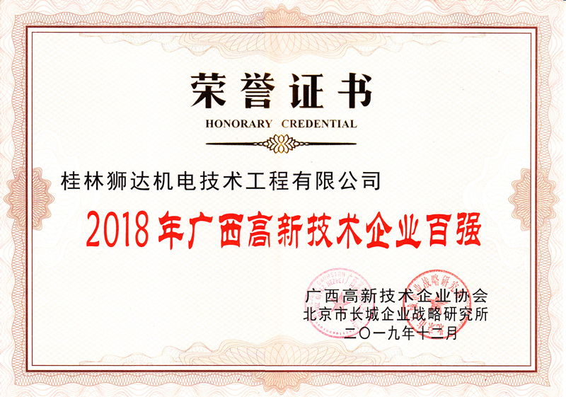 高新技術(shù)企業(yè)百強證書