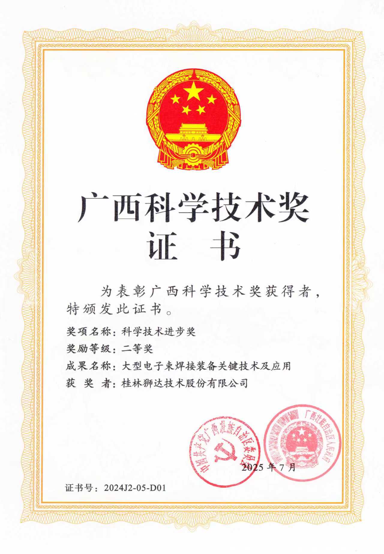 廣西科學(xué)技術(shù)獎證書